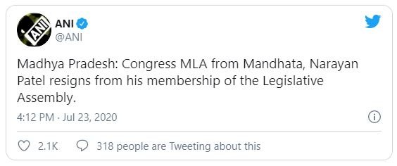 Another Congress MLA resigns in MP, 3 MLAs quit within 15 days